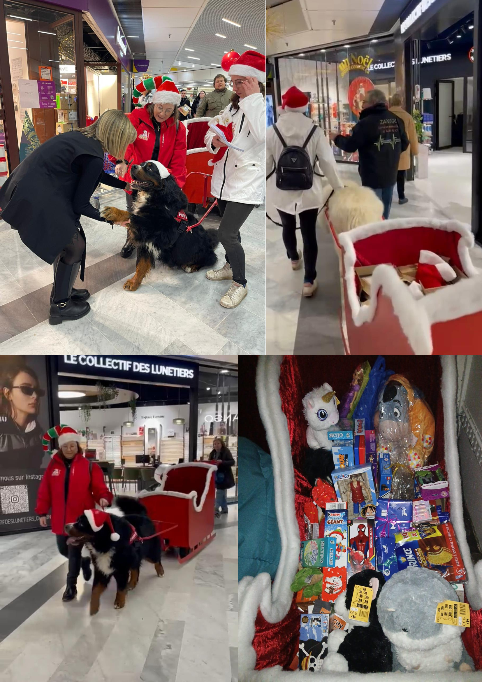 Notre idée était simple et conviviale : nous promener dans les rues de Chalon sur Saône avec deux chiens attelés à des traîneaux du Père Noël, tout en distribuant gratuitement des flyers pour faire connaître notre association et de petits chocolats pour les enfants. Nous pensions que cela serait une belle occasion de partager un moment magique avec vous tous et de sensibiliser à la cause animale que nous défendons avec passion.
