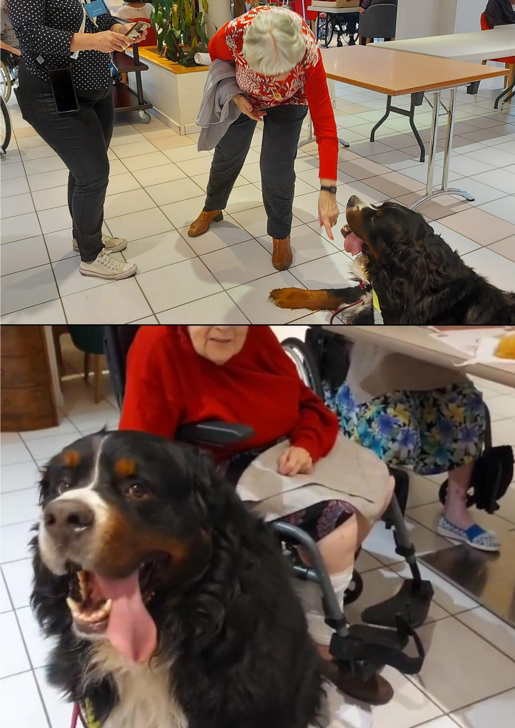 Très sociable et attentif, Palo a su créer une nouvelle fois un véritable liens avec les résidents, allant spontanément à leur rencontre pour offrir câlins, regards complices et moments d'échanges apaisants.
