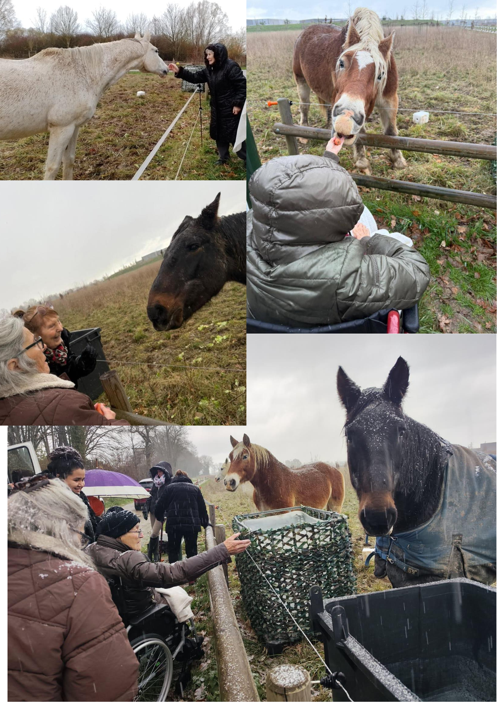 Le 21 novembre, les "bénévoles de l'Ehpad Bel'Saône" se sont rendus directement au pré pour retrouver les chevaux qu'ils parrainent et partager un moment privilégié à leurs côtés.